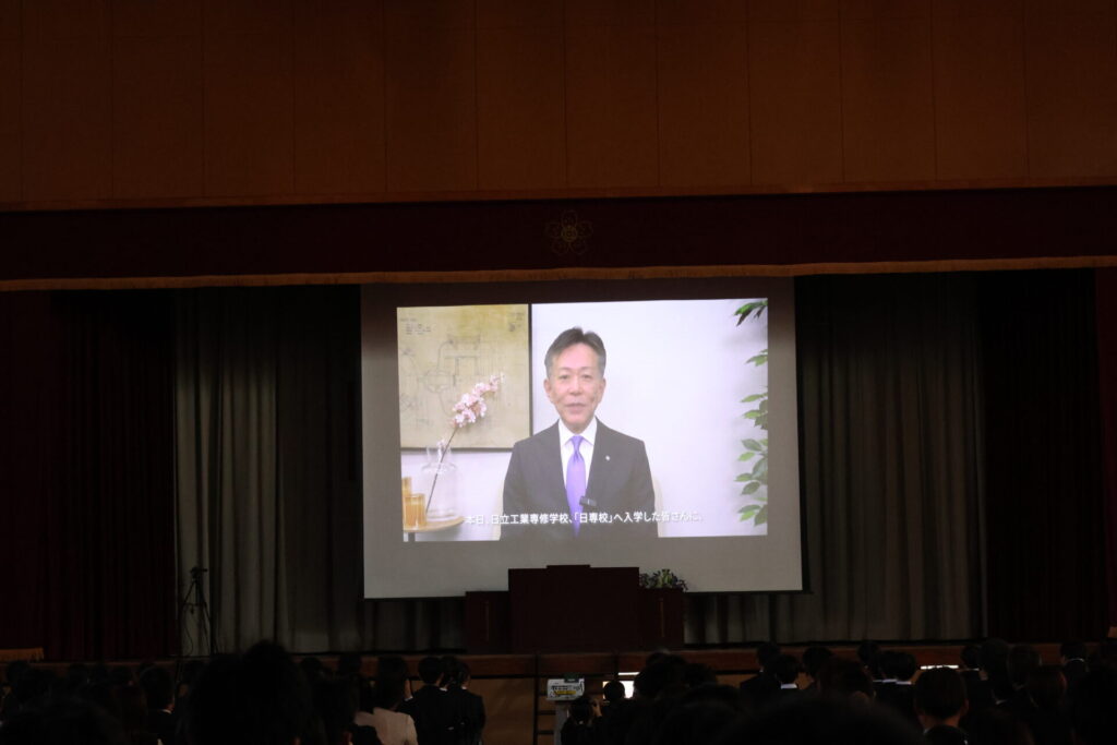 これからの 3 年間、皆さんは伝統ある本校にて、いわば「匠の技」を学ぶことになります。AI が急速に普及する今の時代、私は皆さんに、現場の知恵とデジタルの力を融合させ、世の中に無い新たな価値を生み出していく「デジタル匠」をめざしてほしいと考えています。この学校には、皆さんの学びを支える最高の環境があり、皆さんを導き、共に歩んでくれる先生や先輩がいます。一歩ずつ、着実に、モノづくりの醍醐味と新たな技術を学ぶ楽しさを味わっていただきたいと思います。